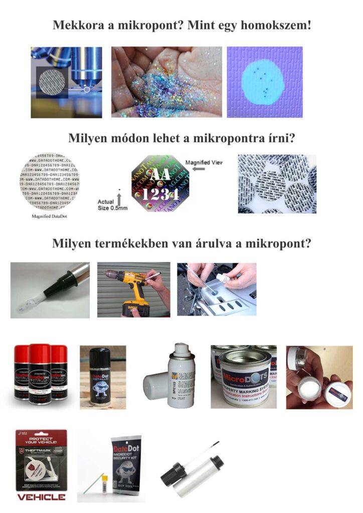 • a mikropontokra például az autó VIN száma van írva, és az alkatrészek vannak megjelölve
